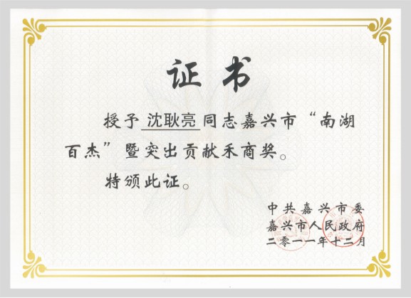 日前,,,,,第二届嘉兴市“南湖百杰”优异人才表扬大会盛大召开,,,,,我公司董事长沈耿亮喜获“‘南湖百杰’暨突出孝顺禾商奖”。。。。。。