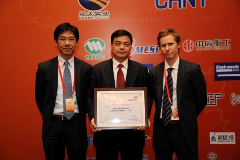 1215日,,, ,, ,,,公司副董事长、副总司理沈会民和销售代表陈国庆受邀加入了必和必拓中国供应商答谢会及圣诞晚宴,,, ,, ,,,我公司被必和必拓公司认可为“及格运送带供应商”。。。 。。。。。上图为必和必拓公司代表与公司副董事长、副总司理沈会民合影留念。。。 。。。。。