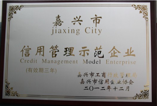 公司被授予“嘉兴市信用治理树模企业”