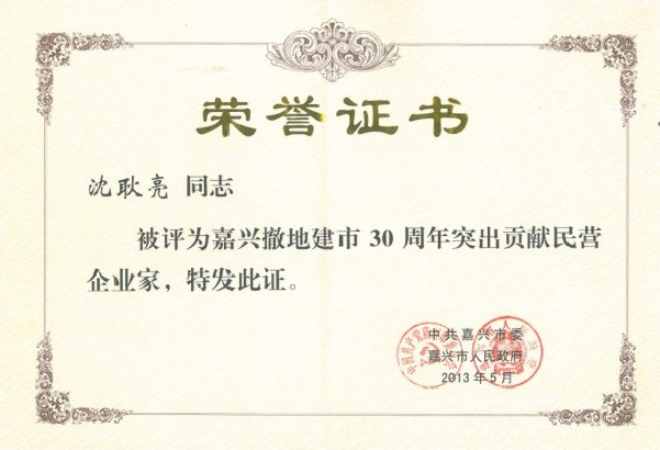 6月5日下昼,,,,,,,,纪念嘉兴撤地建市30周年暨民营企业“二次创业”大会在嘉兴大剧院盛大举行。。。。。大会回首总结了嘉兴撤地建市30周年以来民营企业的生长历程,,,,,,,,表扬30年来为嘉兴社会经济生长做出主要孝顺的民营企业先进整体和先进小我私家。。。。。市委书记鲁俊在会上作主要讲话,,,,,,,,市委副书记、代市长肖培生主持聚会。。。。。公司董事长沈耿亮和行政部司理严宏斌加入了此次聚会。。。。。