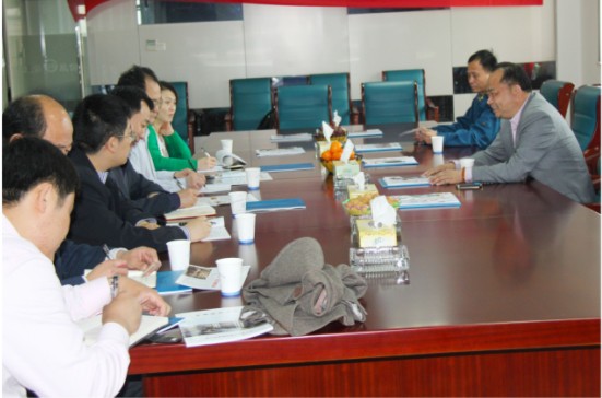 4月11日, ,,,,,,,青岛科技大学副校长刘光烨教授、青岛科技大学高性能聚合物研究院李荣勋教授一行6人来我公司走访交流。。。。。。。公司董事长沈耿亮、人力资源与企管部副司理兼行政随处长严宏斌在公司行政楼四楼聚会室热情接见了刘光烨一行。。。。。。。